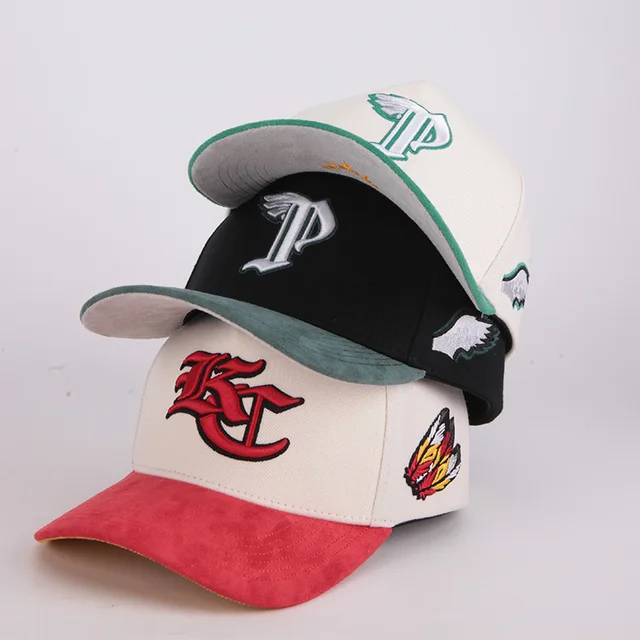 High Quality Satin Lined 3d Sports Caps Baseball Hat for Men Custom logo Cotton Gorras Black Suede Brim 5 Panel Baseball Cap